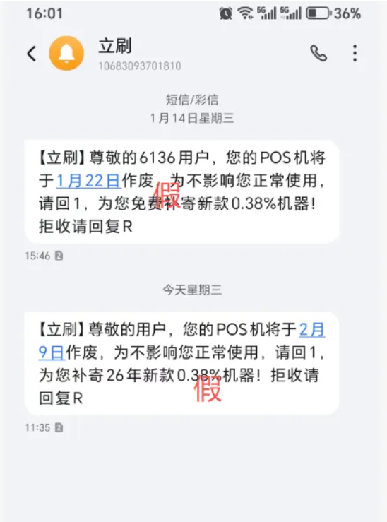 你收到的冒充支付公司升级pos机的短信都是假的!